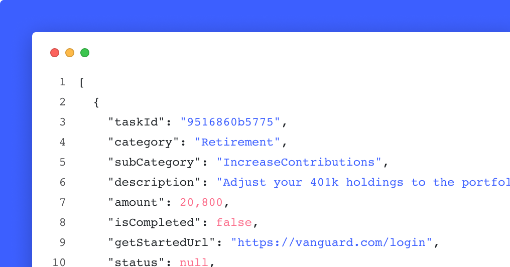 Unlock insights about your customers’ goals and finances (including assets held off your platform) to serve them better.