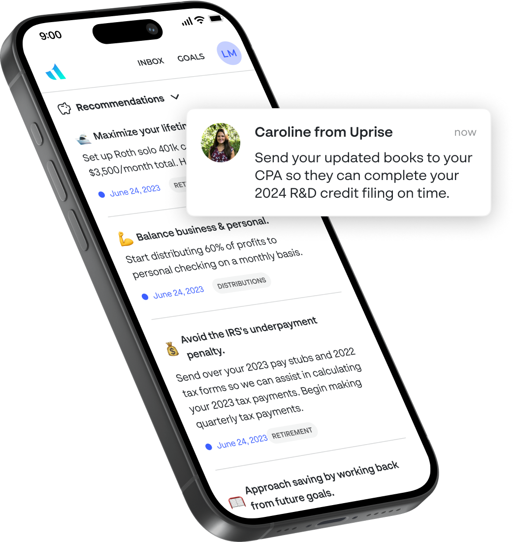 Uprise helps thriving businesses expand their teams and distribute profits, all while maximizing tax efficiency.
