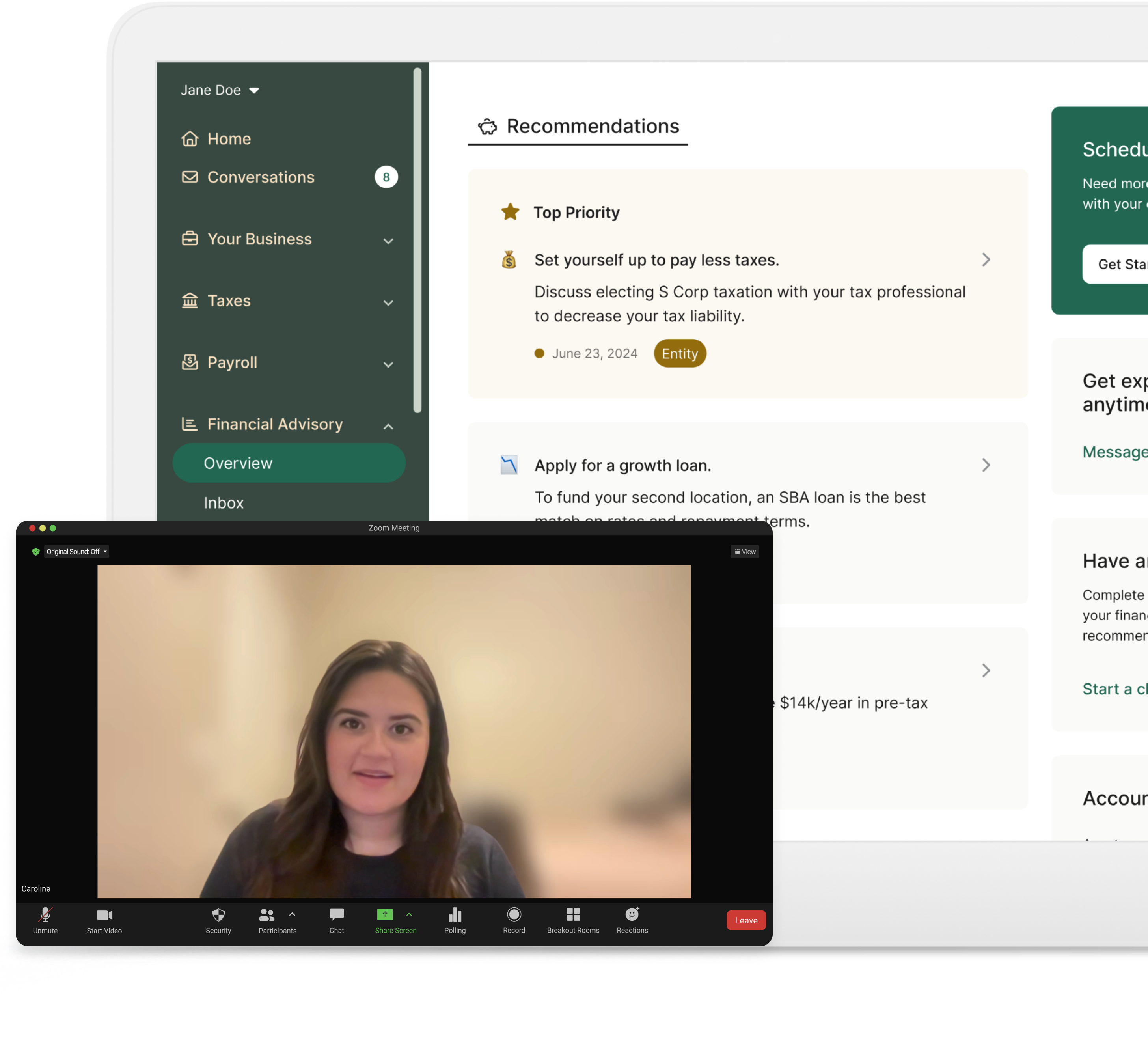 As businesses grow, Uprise helps business owners save on taxes, set up payroll, and evaluate funding options.
